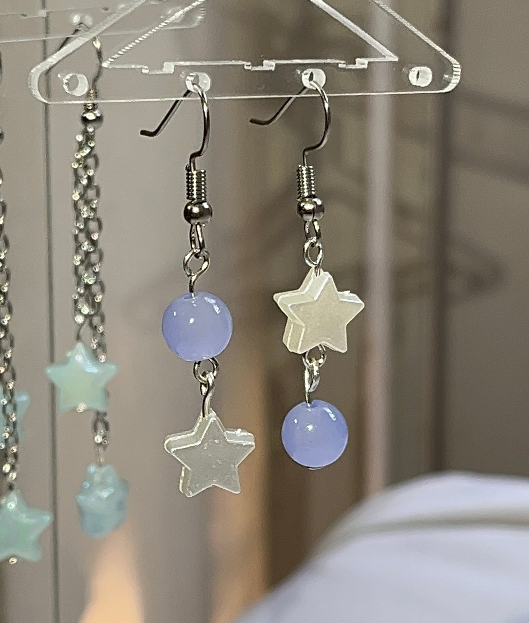 Asymmetric Star & Purple Bead Earrings