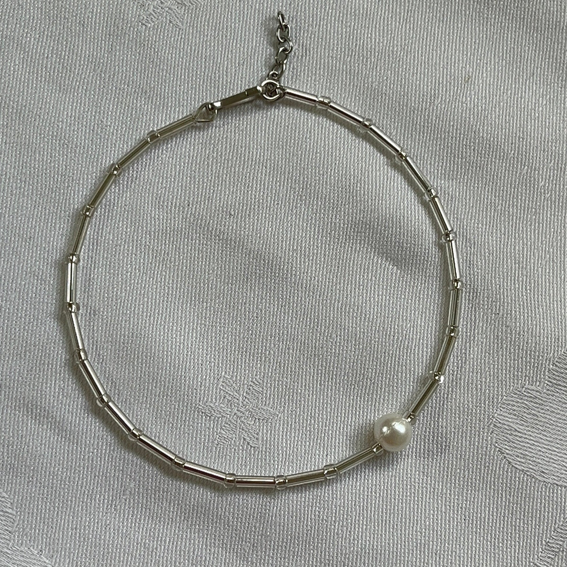 Y2K Silver Tube Pearl Bracelet